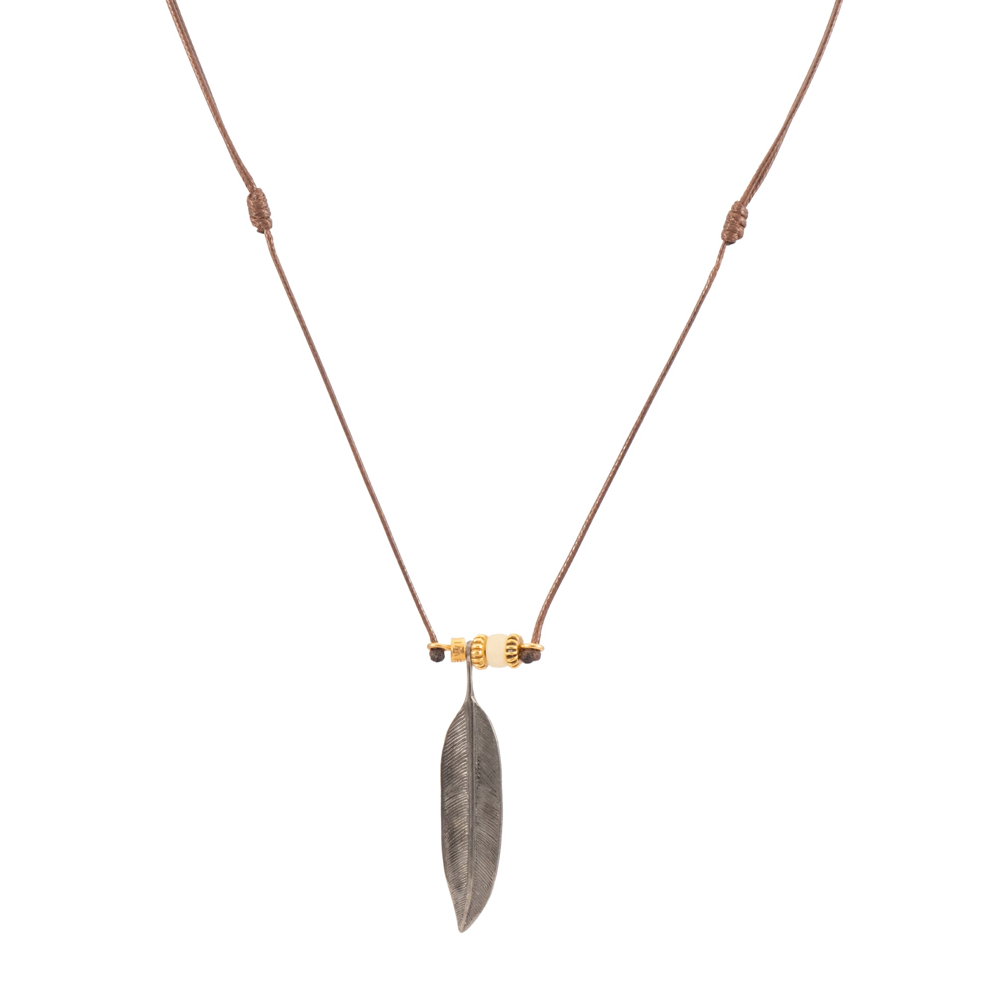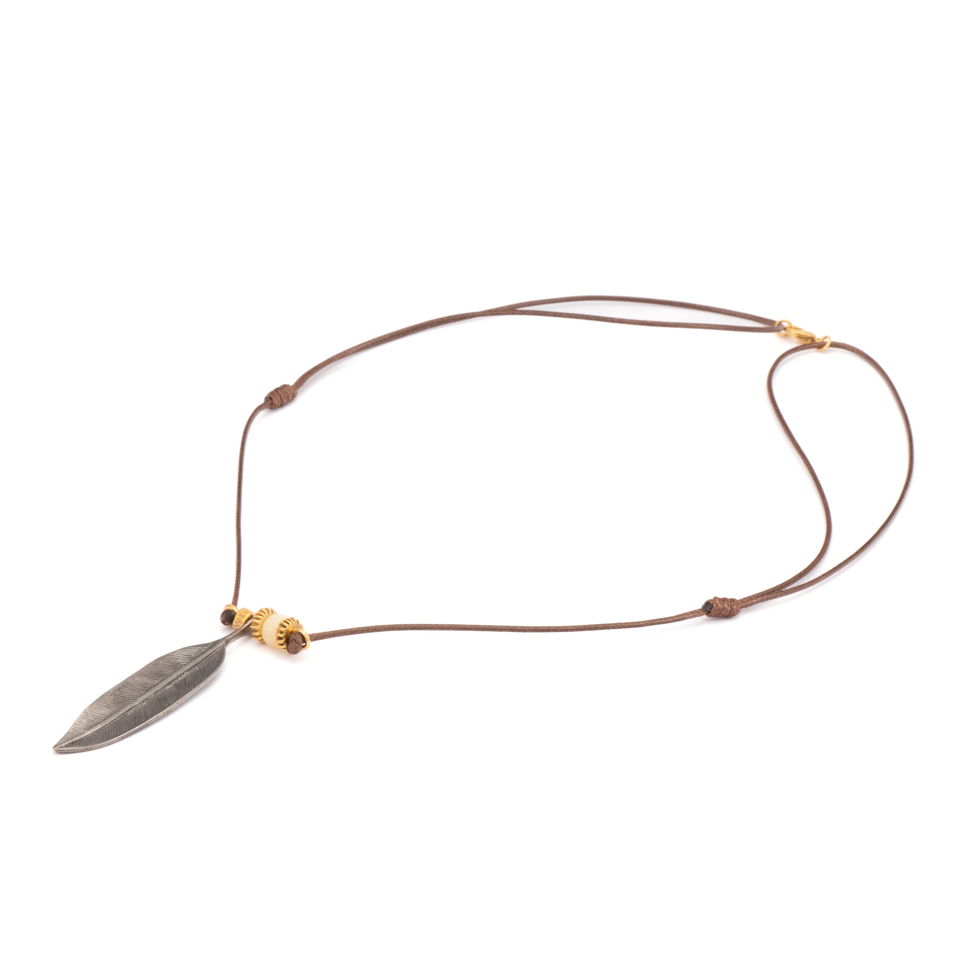 COLGANTE HILO ENCERADO PLUMA MEDIANA CON RODIUM Y ASTA
